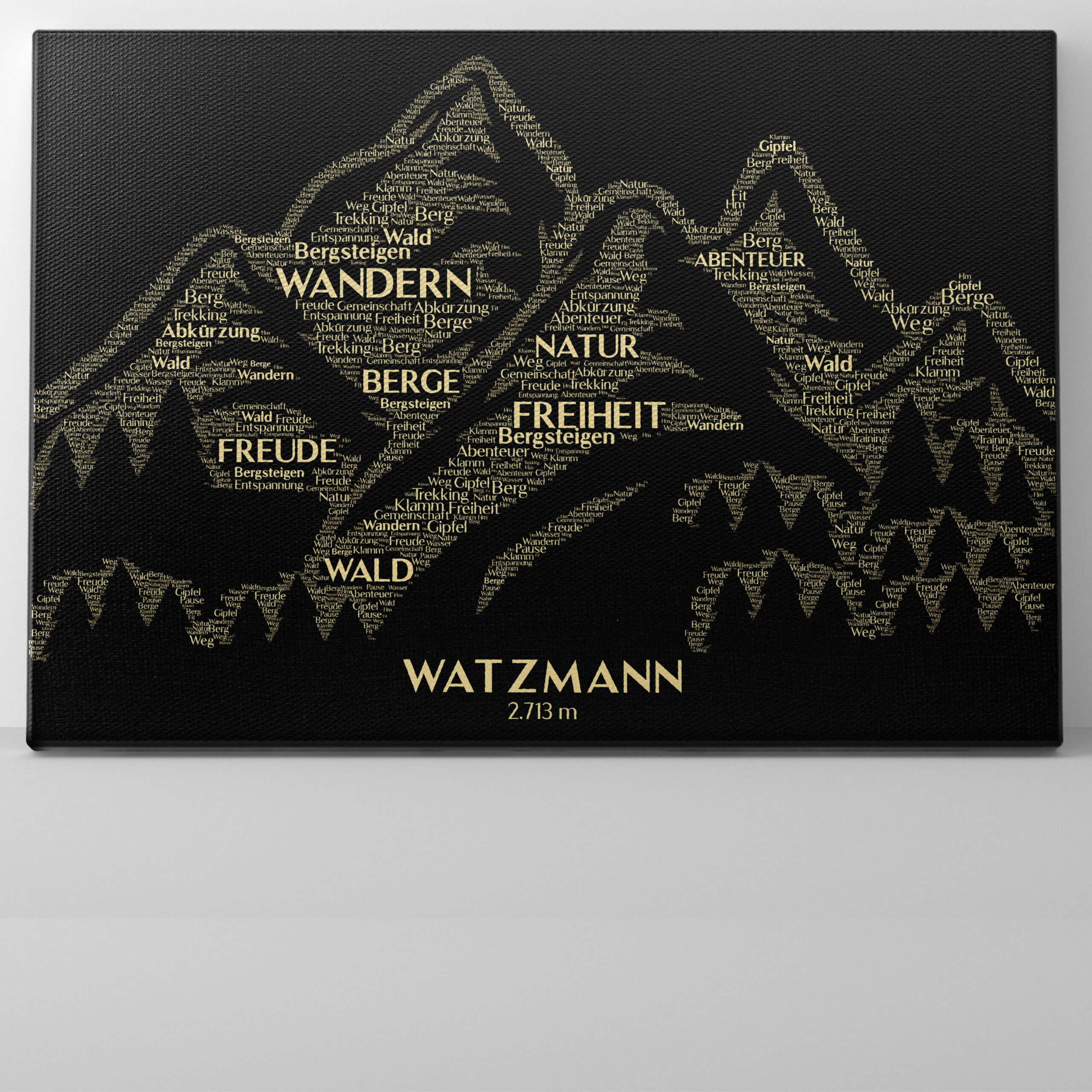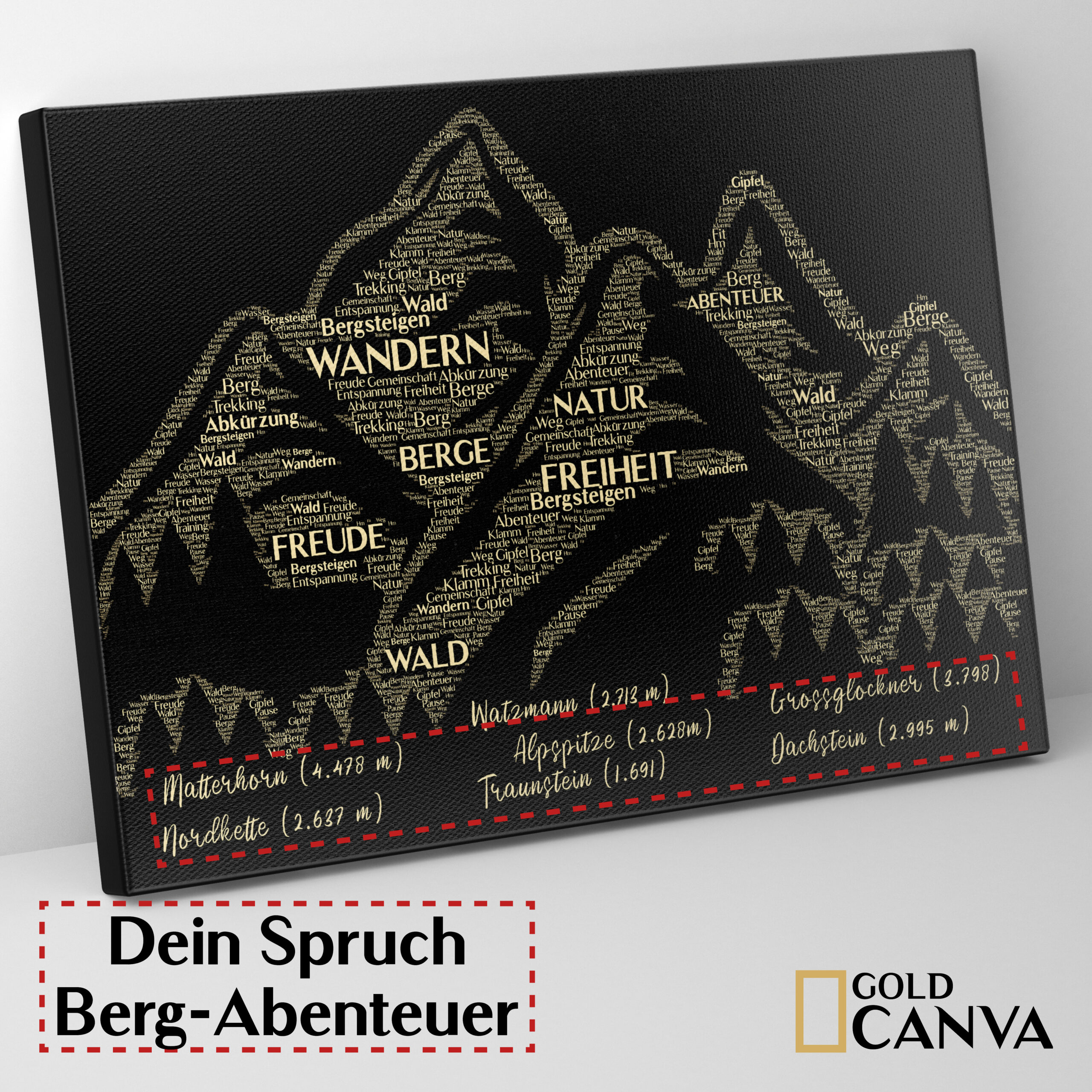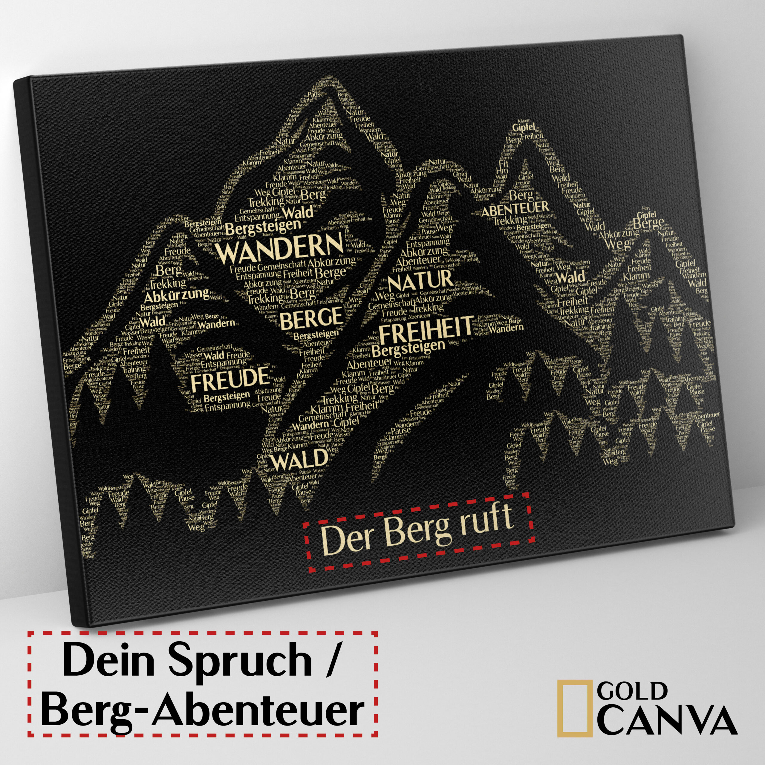 Die goldene Illustration der Berg Silhouette, ist die tägliche Erinnerung an deine Bergmomente. Die personalisierte Leinwand ist ein stilvoller Einrichtungsgegenstand für die heimischen Wände oder das ideale Geschenk für alle Berg- und Naturliebhaber. Die individuelle Gestaltung des Kunstwerkes durch deine persönlichen Bergabenteuer oder deinen Spruch ist einzigartige und bleibt unvergessen. Eine originelle Überraschung für einen Geburtstag, zu Festtagen oder zur angemessenen Feier für Freunde oder Familie.